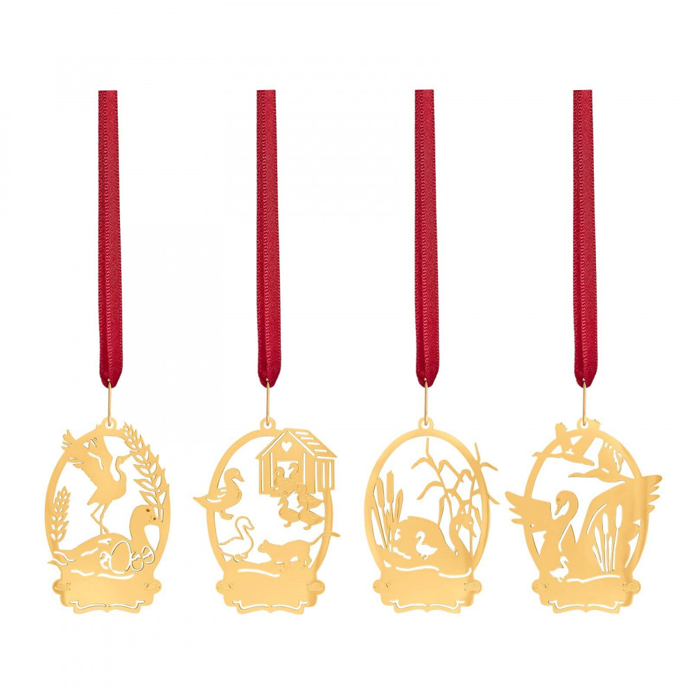 Juleophæng med inspiration fra eventyret 'Den grimme ælling'. Hvert ophæng er forgyldt i 18 karat guld, hvilket giver en varm og eksklusiv glød, perfekt til juletræet eller som en del af din juledekoration. Med dette sæt får du fire unikke ovale ophæng, der hylder det klassiske eventyr.