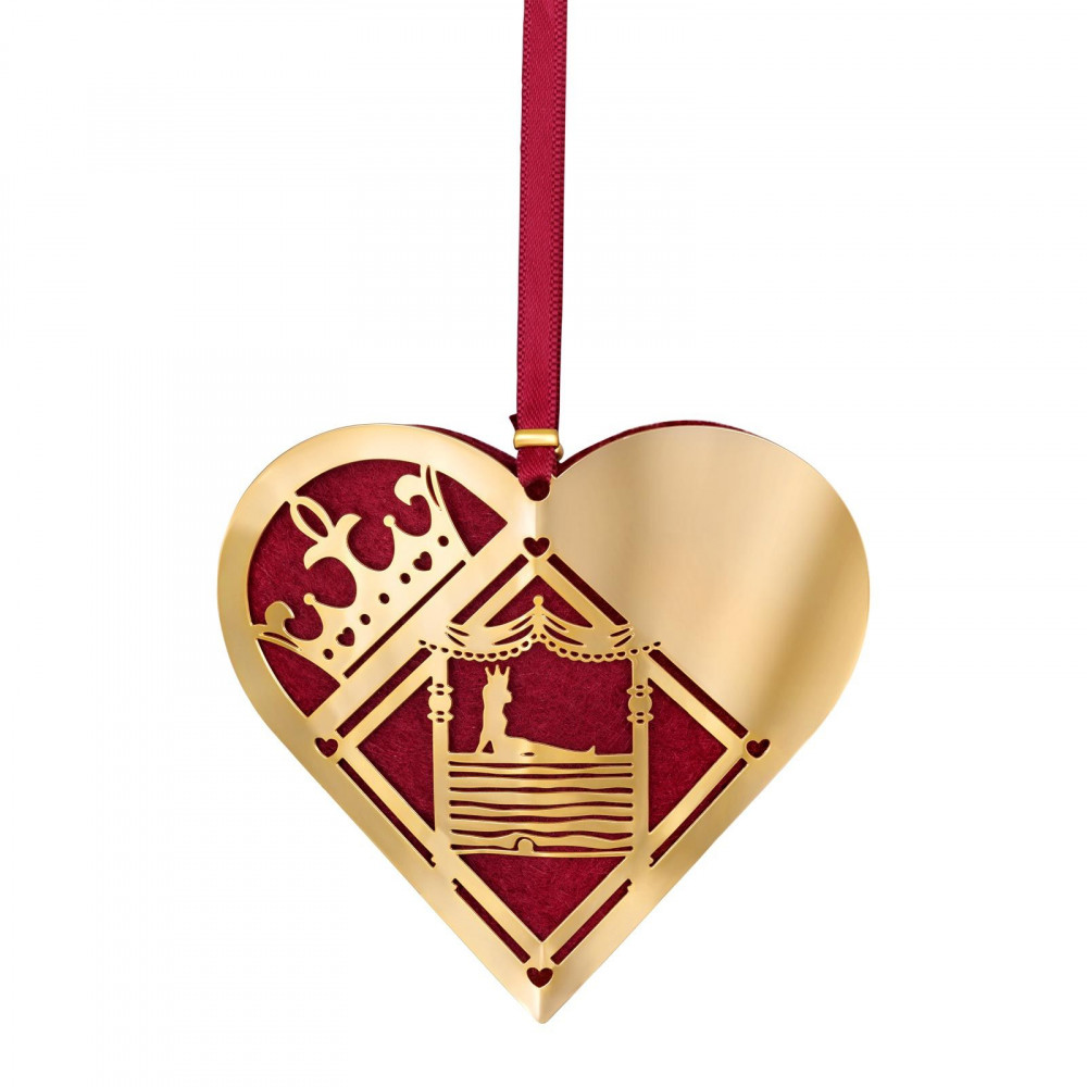 Julehjertet er smukt og detaljeret. På julehjertet finder du motiver fra eventyret om Prinsessen på ærten. Til hjertet medfølger en rød filt og et rødt bånd, så du kan hænge det op på juletræet, i vindueskarmen eller på en smuk gren.
