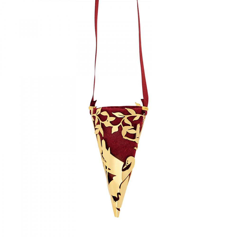 Kræmmerhuset kommer med en rød filt samt et rødt bånd, så det er nemt at hænge på grenen eller træet.
