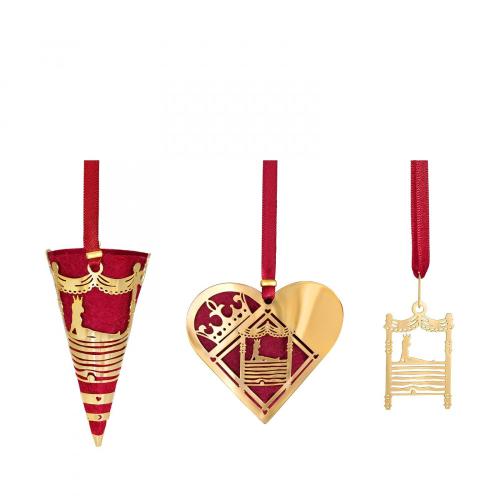 Tilføj nyt pynt til din juleudsmykning med denne julepynt fra Hans Christian Andersen, designet af Nordahl Andersen. Sættet består af 3 miniature-juleophæng, som alle er forgyldt med 18 karat guld. Hvert stykke er inspireret af Hans Christian Andersens magiske eventyr 'Prinsessen på ærten'. Disse kan både benyttes som pynt på juletræet, i juledekorationen eller som bordpynt.