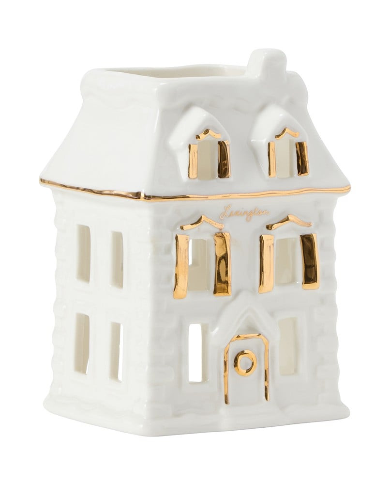 Skab en magisk vinterstemning med denne House stentøjslanterne fra Holiday 25-kollektionen. Den har et charmerende vinterhusdesign med glimrende gulddetaljer på døre, vinduer og tag. Fremstillet i holdbart stentøj med blank glasurfinish, perfekt som lanterne eller lysholder. Håndvask anbefales.