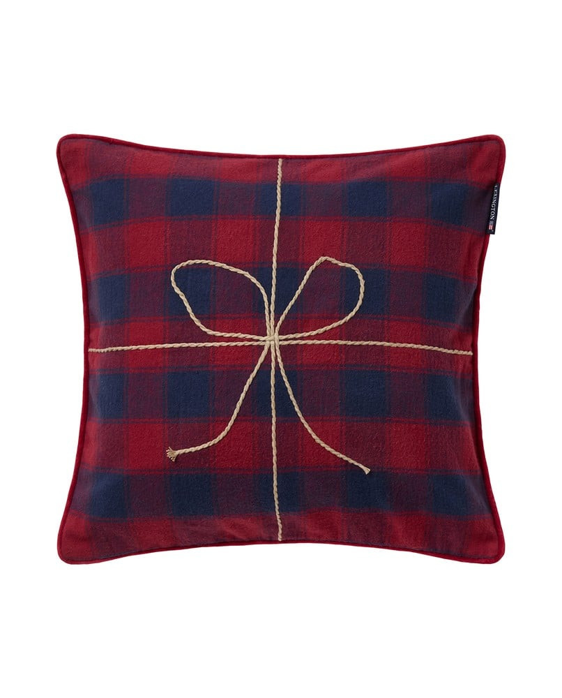 Lexinton wrapped checked organic flannel pillow cover, dark blue/red